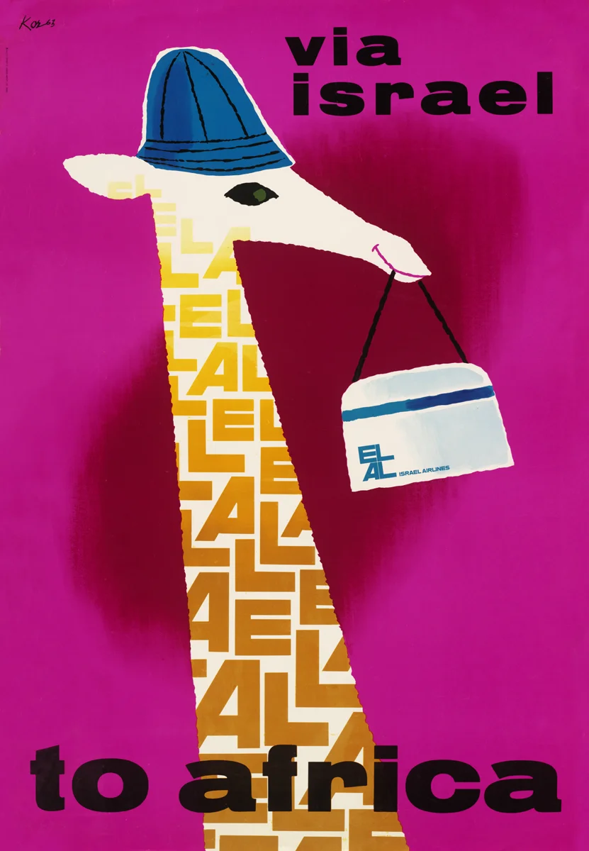 In the aftermath of World War II – when poster design was deemed the “Princess of Graphic Art” – Paul Kor geared his career towards creating posters for advertising firms. By 1949 his designs were plastered across billboards throughout the whole of Israel. But it was not until 1952, after winning a prize for a poster he created in honor of Israel's second Independence Day, that his career really began to soar. He started reigning in commissions to design posters for major governmental organizations and some of the most widely recognized, international companies.